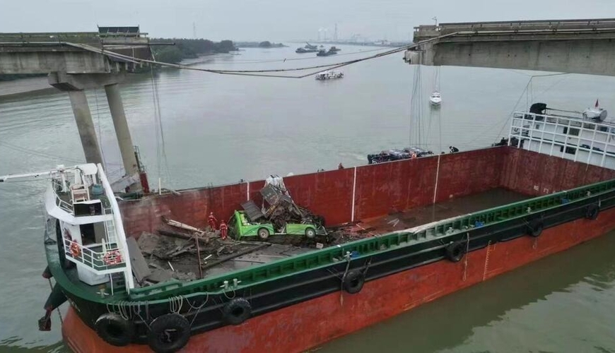 Çinin Quançjou şəhərində yük gəmisi körpüyə çırpılıb.