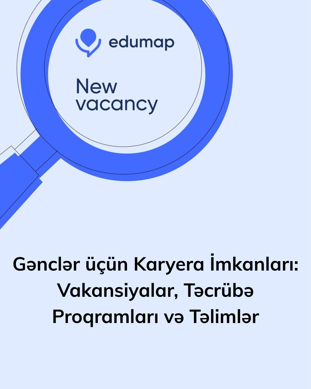 Müasir dövrdə gənclərin şəxsi və peşəkar inkişafı üçün vakansiya elanları, təcrübə proqramları, təlimlər, seminarlartəqaüdlər mühüm rol oynayır. Hər bir gənc həm iş tapmaq, həm də biliklərini artırmaq üçün doğru mənbələrdən faydalanmalıdır. Edumap.az olaraq məqsədimiz gənclərə bu imkanları bir məkanda təqdim etməkdir.